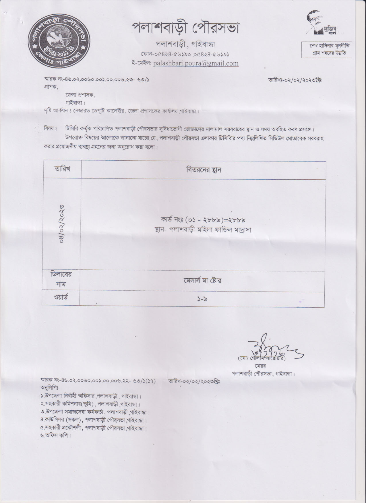 পলাশবাড়ী পৌরসভার টিসিবি পণ্য বিতরণ সংক্রান্ত