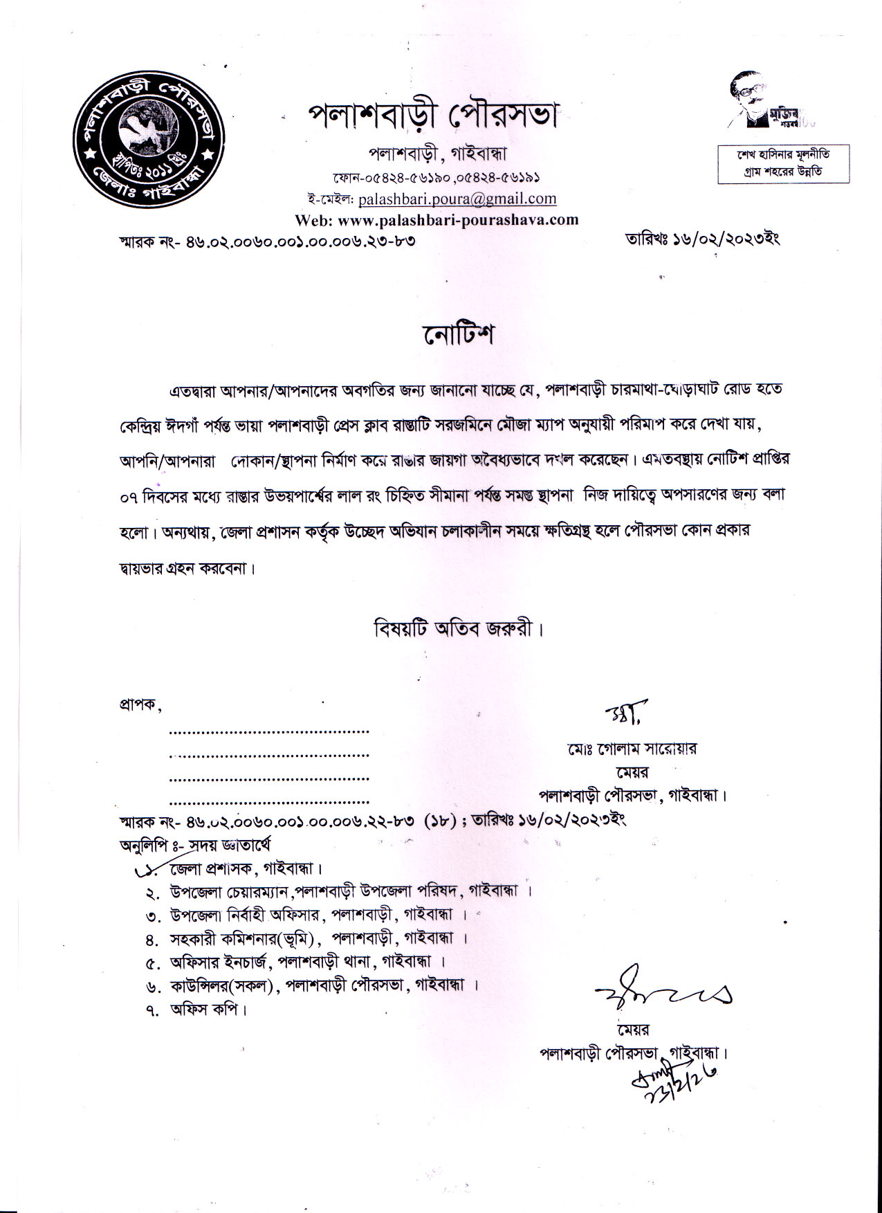 অবৈধ্য স্থাপনা অপসারন সংক্রান্ত