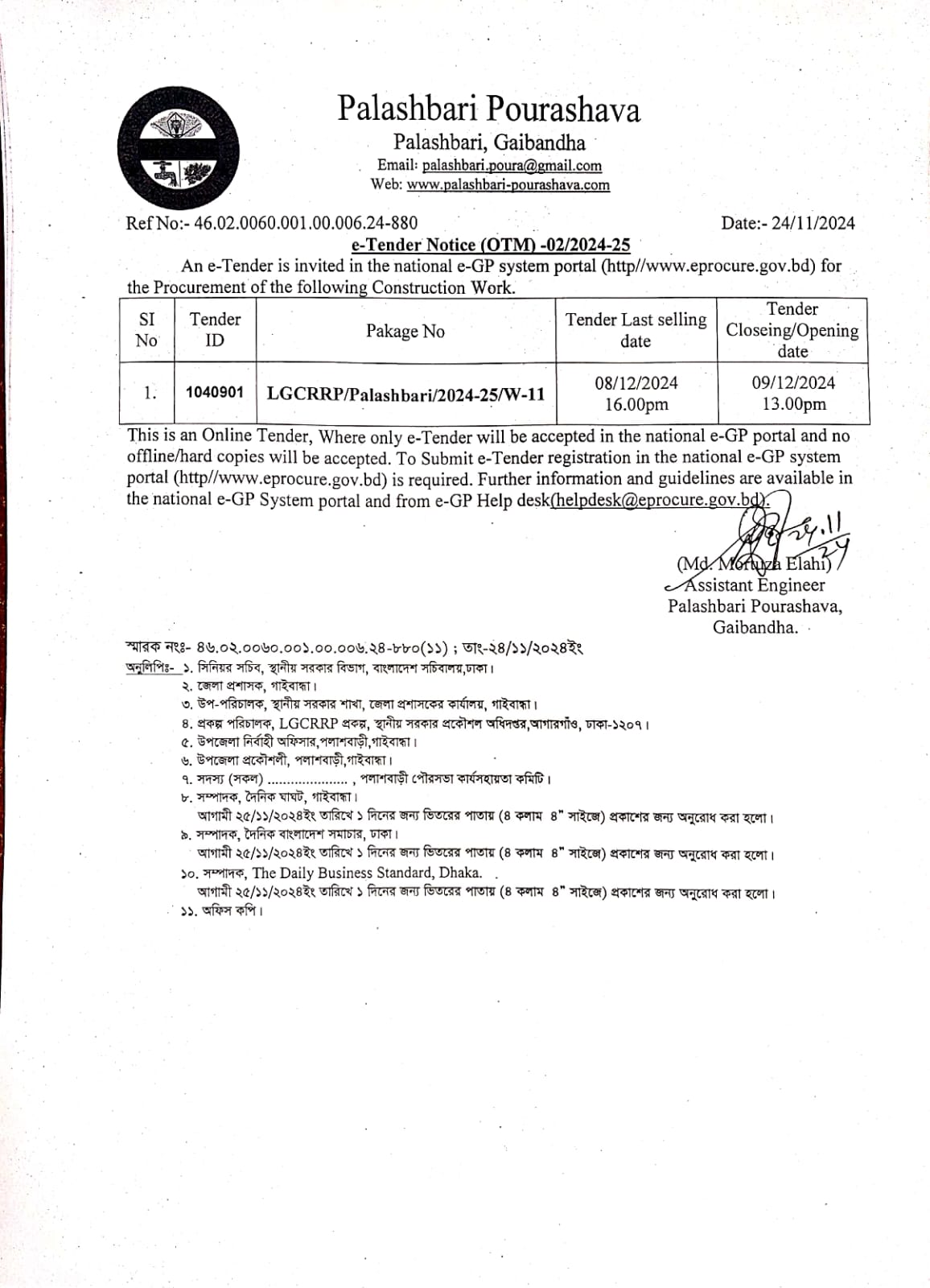 টেন্ডার বিজ্ঞপ্তি-০২/২০২৪-২৫