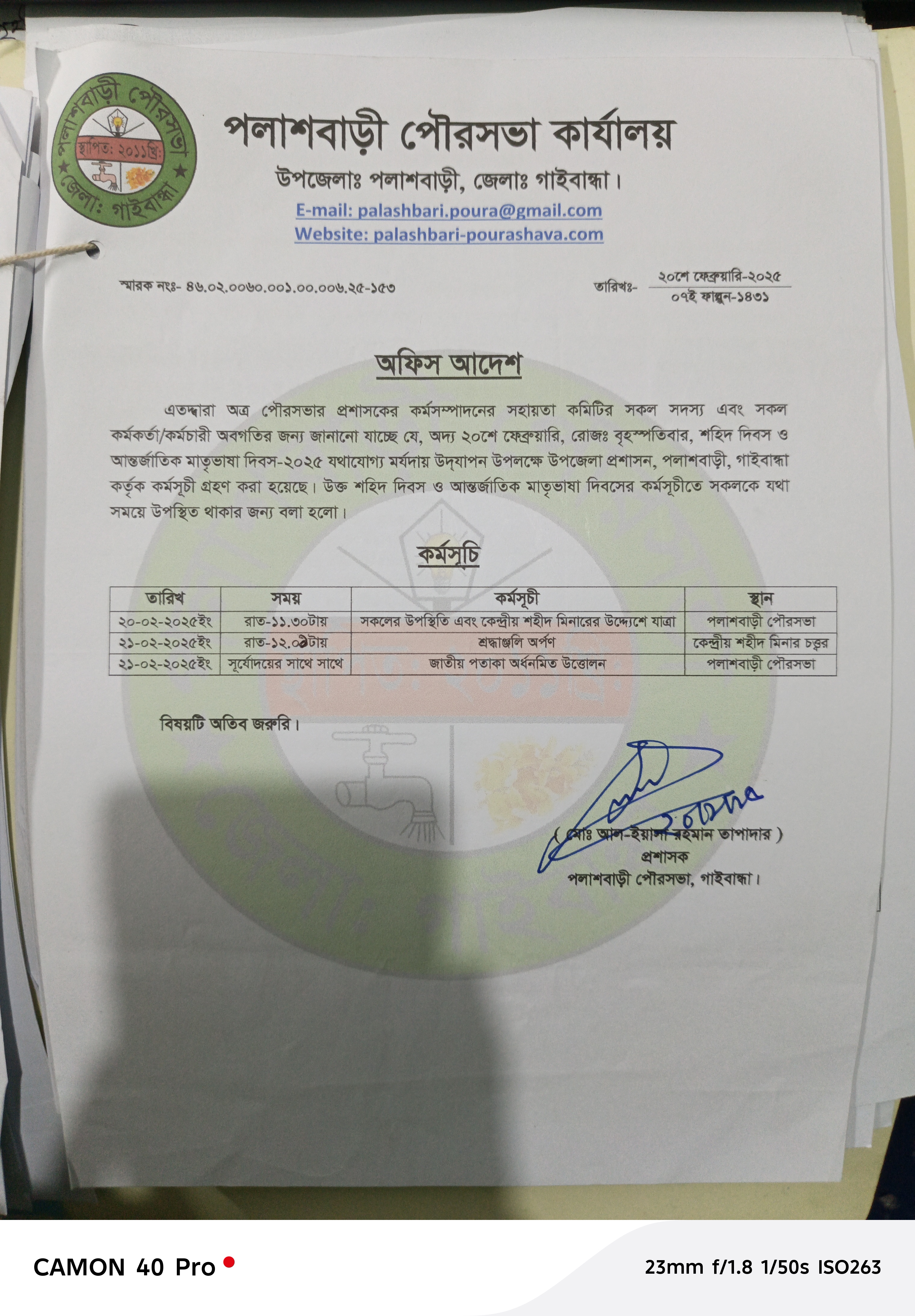 অফিস আদেশ-১৫৩ তারিখঃ ২০/০২/২০২৫ইং