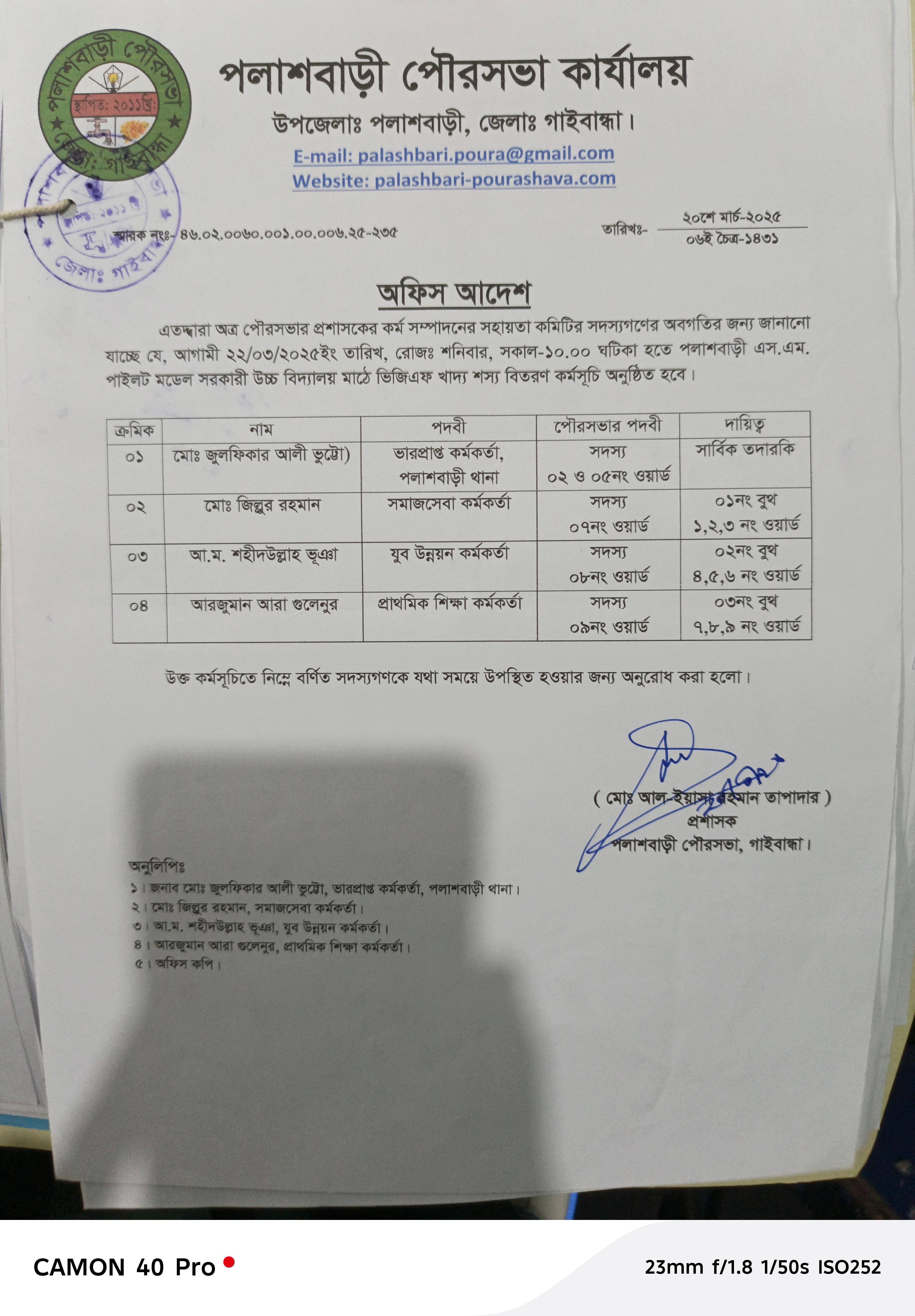 অফিস আদেশ-২৩৫ তারিখঃ ২০/০৩/২০২৫ইং