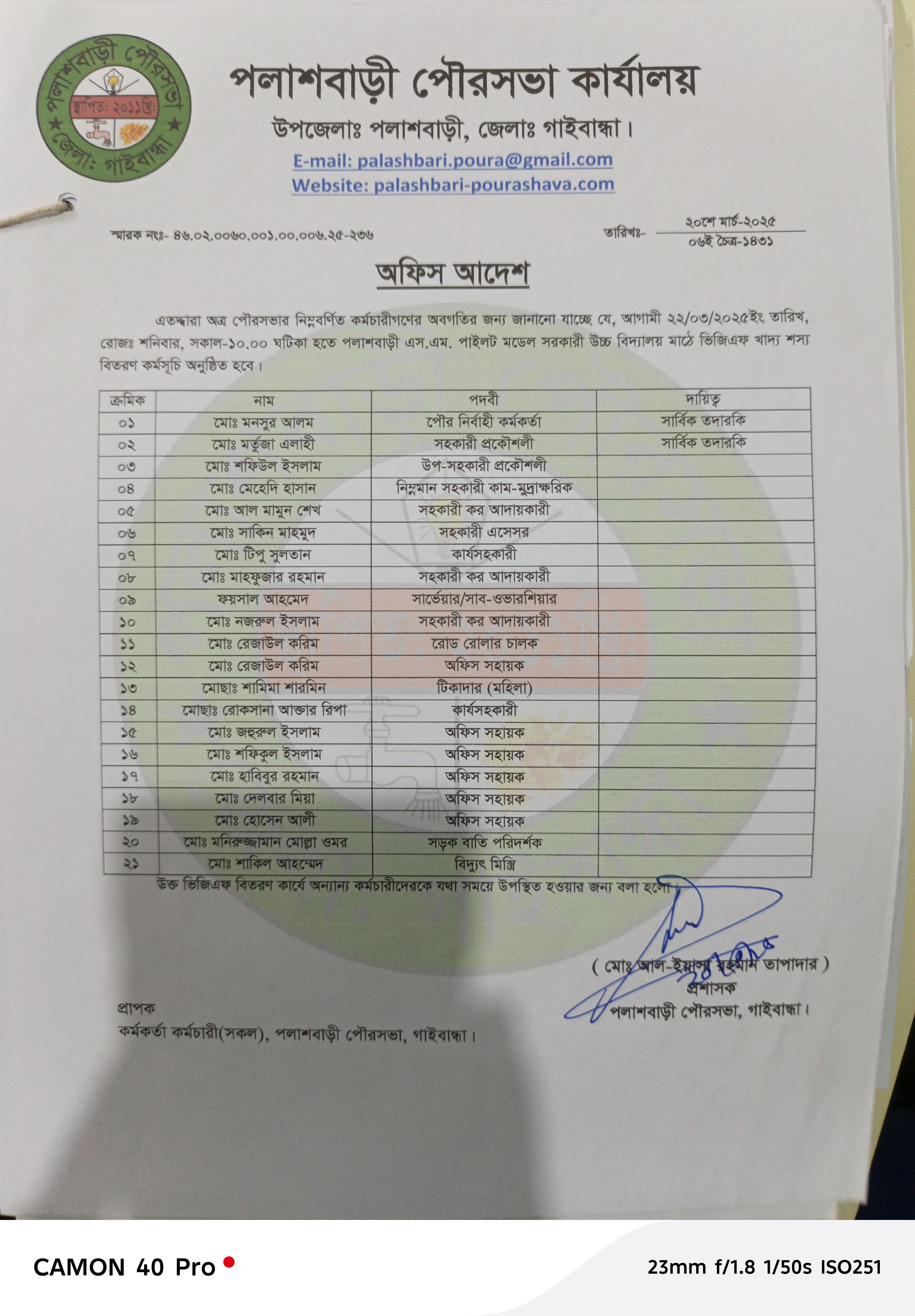 অফিস আদেশ-২৩৬ তারিখঃ ২০/০৩/২০২৫ইং